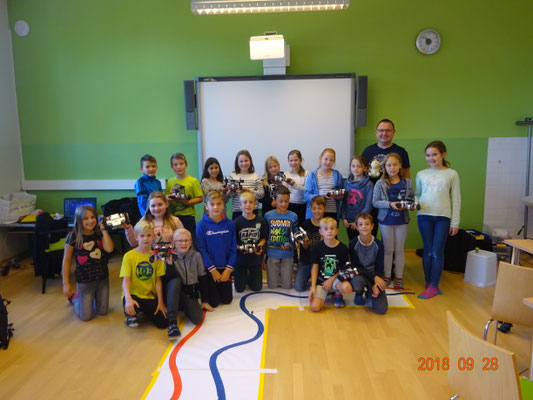 Franz Muthentaler und Alexander Löwenstein konstruierten mit den Kindern Robotermodelle (Lego Mindstorms EV3). Über spezielle Computerprogramme konnten sie das Verhalten ihrer Roboter programmieren. Alle waren mit großem Eifer dabei.