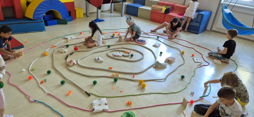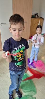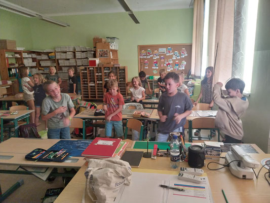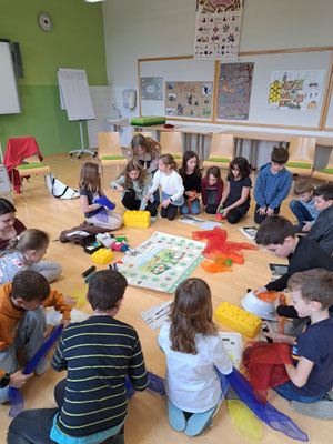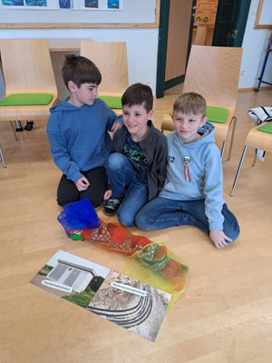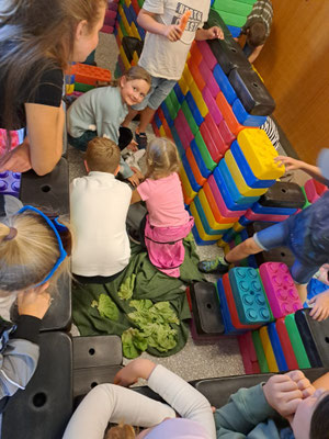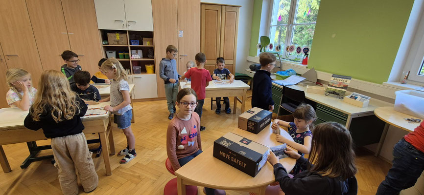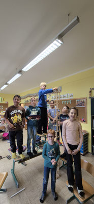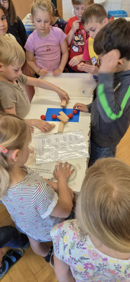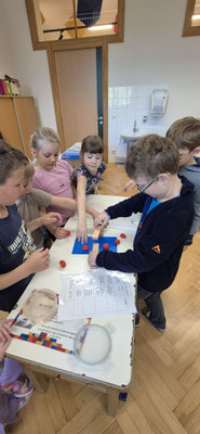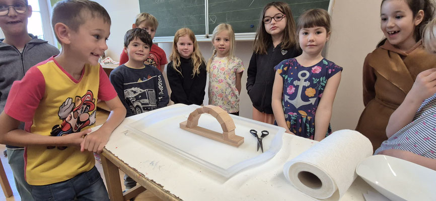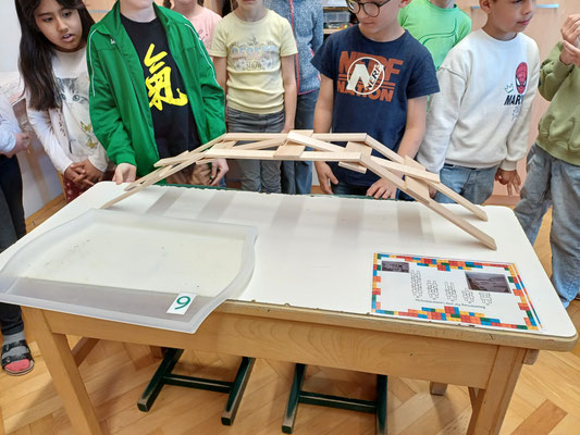 Forscherlabor zum Thema Brücken. Die Chamäleons der 1c waren verblüfft-genauso soll es sein