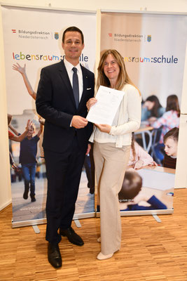 Karin Ederer wurde mit 1. September nun zur Direktorin der VS Purgstall ernannt. Am 23. September fand die Dekretverleihung durch den Bildungsdirektor HR Mag. Fritthum statt.